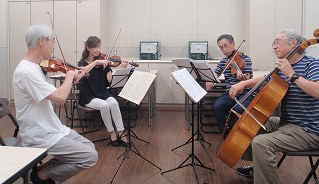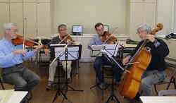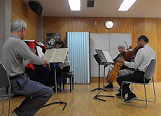 | 2016年 3月17日(木)15:00〜 ハーモニーみどり(中山地区センター) ●ハイドン 弦楽四重奏曲 OP.54−2 ●ハイドン 弦楽四重奏曲 OP.54−3 ●編曲したばかりの「365日紙飛行機」の譜面を合わせてもらった |