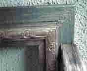 | ニスに金粉を混ぜて塗装。外側に青を入れてみる | 50号F額縁完成! | 絵が入った。日本画「根あけ」 |
