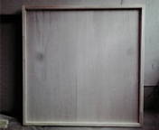 | 妻の依頼で日本画のF50号というサイズのパネルを製作した。116、7cm×91.0cmというやはり意味不明の寸法だ。結局その額縁も作ることになった。前回ハマ展で、自分が作った100号の額縁を見た時、自分で言うのも何だが、結構立派に見えた。すっかり自信をつけて、「さあどんな大きな公募展でも行ってこい!」そんな気分で作った。 |