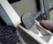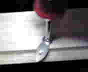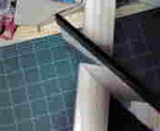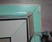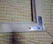 ![]() マットのサイズに合わせて179円の材木を45°に切って繋ぐ、ボンドで接着後、L字金具で固定 |