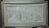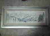 | ●「このスケッチを額に入れたいんだけど…」と妻がブツブツ。正月に小谷で描いた雪景色のスケッチで画用紙を 横につなげた72×32.5という変なサイズなのだ。 |