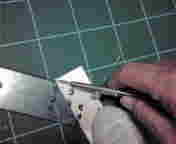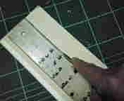 ![]() デザインボードの切れっ端の角をカンナがけ |