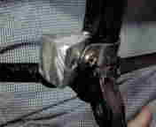 ![]() ネックを痛めないように、ラバーシートを貼る |