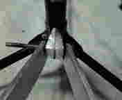 ![]() 金具を譜面台の一番下に取り付ける.ここにギター受けを付けようという考えなのだ。 |