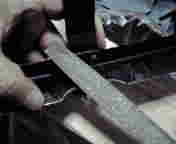 ![]() ギター受け用のバーを作る。3mm厚のアルミ板を金鋸で巾15mm〜長さ300mmを2本切る |