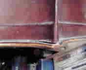 | よく見ると、膠が相当劣化している。ざっと見て4箇所の剥がれがあるが、あちこち次々に剥がれて来そうに見える。この楽器を大金かけて修理するのはいかにも馬鹿らしい。私のところに来たのがうなずける。ますますやる気が出てくる。無料修理の始まり始まり♪♪ |