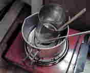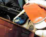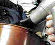 ![]() ドライヤーで患部を暖める 膠のゲル化を防ぐ為だ |