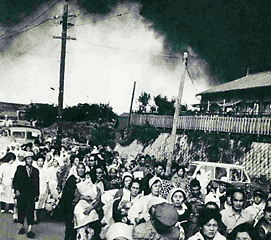 昭和石油の火災の近くに塩素系のガスタンクがあり、「爆発すると中枢神経系の障害がおきる」という説明で、避難命令