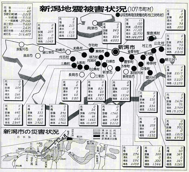新潟市内の主な交通機関は新潟交通のバスである。道路はあちこちで、亀裂、段差等でズタズタに寸断されて、