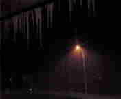 2階の窓から望む小谷 1階の屋根に1mの雪 ツララが成長