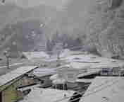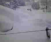 | 小谷村での初めての冬を体験した。あいにく大雪警報で、大雪が降り続き「地元の人ですら外に出ない」という記録的な雪に出会った。おかげで2泊3日をサンテイン小谷の部屋に閉じこもることになった。冬季に閉鎖されている雨飾荘の従業員や、昨年までの支配人、さらに20年前の支配人が、サンテインおたりで働いていて久々の再会もあった。ここはここで十年来のおなじみさんというお客さん達もいて、「小谷症候群」という人達がけっこういるものだと仲間意識が芽生えた。帰りの雪道は結構緊張感があったが、新潟生まれの元スキー狂としては、青春時代の血が騒ぐドライブだった。割合スムーズに帰ってきた。 |