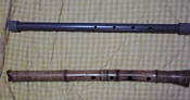 | 大学1年生の時、ギター部の他に邦楽部にも所属して尺八を吹いていた。師匠にもついて黒髪、3段の調べ、6段の調べを定期演奏会で吹いた。山本邦山にあこがれて始めたものの、尺八でジャズは無理だと思い知らされて退部した。2年生になってギター部一筋にのめり込んでいった。ある時、塩ビ管で尺八を作ってみようかと発作的に製作してみた。結構鳴るから塩ビ管でも馬鹿に出来ない。 |