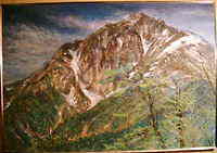 | 深田久弥「日本百名山」から 雨飾山という山を知ったのは、いつの頃だったかしら。信州の大町から糸魚川を辿って,佐野坂を越えたあたりで、遙か北のかたに、特別高くはないが品のいい形をしたピラミッドが見えた。しかしそれは、街道のすぐ左手に立ち並んだ後立山連峰の威圧的な壮観に眼を奪われる旅行者にはほとんど気付かれぬ、つつましやかな、むしろ可愛らしいと言いたいような山であった。私はその山に心を引かれた。雨飾山という名前も気に入った。北面の梶山新湯から、その雨飾山に登ろうとしたのは、太平洋戦争の始まる前であった。その頃はまだハッキリした登山路がなく、さんざん道を探しあぐねた末、とうとう分からず仕舞いで引き返した。しかし北側から仰いだ雨飾山はよかった。左右に均整の取れた肩を長く張って、その上に、猫の耳のように二つのピークが睦まじげに寄り添って、すっきりと五月の空に立っていた。やはり品がよく美しかった。それからしばらくして、今度は南側から登るつもりで、小谷(おたり)温泉へ行った。こちらからも道はなく、私は山に詳しい土地の人を案内に頼んでもらった。しかし来る日も来る日も雨で、四日間も待ったが、ついに空しく引き上げねばならなかった。三度目の雨飾山は、戦後のある年の十月下旬であった。そして私の長い間の憧れが今度は達せられた。登山口はやはり小谷温泉を選んだが、道は途中までしかなかった。頼んだ案内人を先に立てて、私たち四人はみごとな紅葉で塗りつぶされた山へ向かった。大海川(おおみがわ)へ入るともう道は消え、河原伝いに遡って行くほかなかった。大海川は上流で二つに分かれ、私たちは左の荒菅沢(アラスゲサワ)を採った。それまで比較的ゆるやかだった谷が、にわかに急な沢となり、石を飛び越えたり、へつったり、滝を避けるために藪の中を高捲きしたりせねばならなかった。沢筋に水が無くなって、ゴロゴロした大きな石を踏んで行くようになると、もう森林帯を抜け出て、見晴らしが展け、すぐ頭上にすばらしい岩壁が現れた。それはフトンビシと呼ばれる巨大な岩で、その岩の間に廊下のような細い隙間が通じていた。その咽喉を通り抜けて上に出ると、すでに沢の源頭で、あとは枯れた草つきの急斜面を登るだけであった。急登にあえぎながら稜線に辿りつくと、ハッキリした道がついていた。それは近年梶山新湯から開かれた登山道であった。それから頂上まで、急ではあったが、一登りにすぎなかった。ついに私は久恋の頂きに立った。しかも天は隈なく晴れて、秋の午後三時の太陽は、見渡す山々の上に静かな光をおいていた。すべての頂には憩いがある。梢にはそよとの風もなく、小鳥は森に黙した。風化し摩滅した石の祠と数体の小さな石仏の傍らに、私たちは身を横たえて、ただ静寂な時の過ぎるのに任せた。古い石仏は越後の方へ向いていた。その行手には、日本海を越えて、能登半島の長い腕が見えた。一休みして、私たちはもう一つのピークの上へ行った。案外近く、三十メートルほどしか離れていなかった。下から眺めてあんなに美しかった、その二つの耳の上に立った喜びで、私の幸福には限りがなかった。 次のページへ |