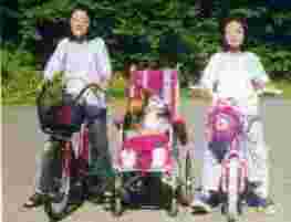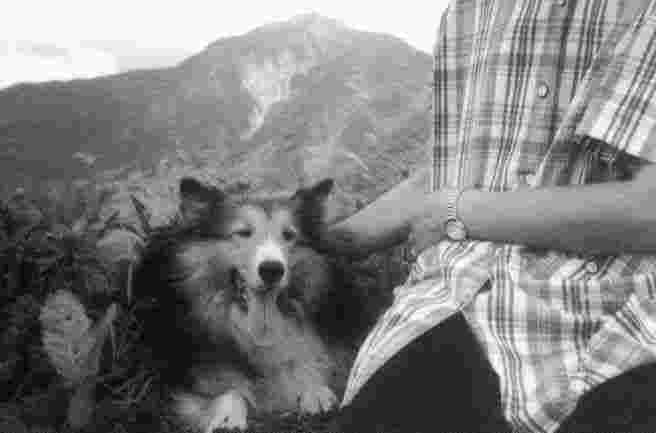 | チャッピー最後の小谷は2002年、15歳だった。この数年前から宿予約の頃になると、長旅に耐えられるだろうかと心配だった。獣医さんにたずねると全然問題ないとのこと。「意地でも連れていってもらうんだよ、チャッピー!」などとおっしゃる。お風呂マットとクッションで居心地よくした車内では、ほとんど横になっていた。若い頃は、高速道路ではじっと伏せの姿勢、一般道に降りると外に向かって吠えたり「休憩、休憩!」と大騒ぎしていたのに…。その休憩場所の中綱湖畔へは夫が抱いて降りた。小谷では車で行けない所はバギーに乗せた。筋肉のなくなった体は柔らかく、ぐったりしていたけれど、耳はピンと立って目はまん丸、表情はやけに生き生きしていた。気持ちだけは、風を切って全力疾走していたのかもしれない。オーイ、あの山に登った犬はだれだっけ? 次のページへ |
