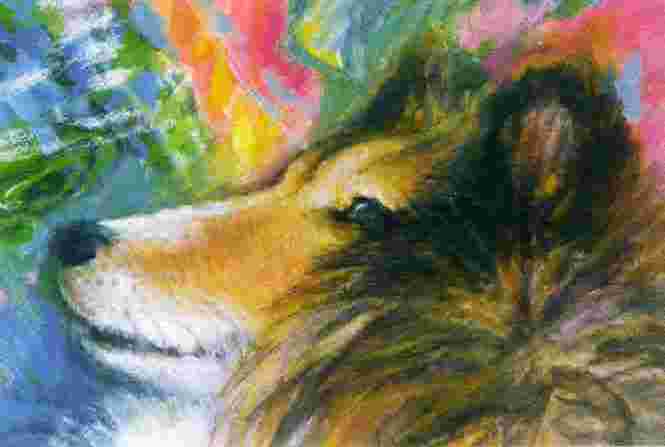 | 2,3月は、いつまでも風邪が抜けず、スキー旅行もキャンセルしてふさぎこんでいた。そんな時なぜか、わが家に来た頃のチャッピーのことをあれこれ思い出した。晩年のしみじみしたチャッピーではなく、おかしなことや、間抜けなことをしょっちゅうしていた半人(犬)前のチャッピーだ。絡んだ毛糸玉の糸口を見つけたみたいに、いくらでも果てしなく思い出した。当時の写真を見たくなった。色あせた写真の中のチャッピーは薄っぺらな体に尖った鼻、幼い顔つきをしていた。楽しかった思い出は気持ちを軽くし、次々と文字に変わっていった。書き進むうちにチャッピーの一生が、自然と春夏秋冬にあてはめられていった。あどけない若犬が春の光の中にいた。夏の陽をいっぱい浴びたしなやかな成犬。やがて気がつくと秋の陽が背中を追い越して、長く優しい冬が来た。大病を乗り越えた老犬は犬としての到達点に近づく…。初めて会った子どもにも、犬嫌いの老人にも心を許した。西陽に毛を輝かせて道に長い影を引いた。それはあたかも悔いのない一生を、じっと振り返っているようだった。 |
