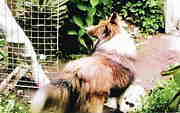 | 縁あって 1988年4月のある日、仕事上の先輩S氏から「犬を飼いませんか?」とのお誘い。親戚の方が飼えなくなったとのことだった。犬も見ないで「はい。」とふたつ返事。子どものころからいつも家には犬がいて、家族の喜怒哀楽の思い出も犬なくしては語れない、そんな家庭に育った。結婚した後は一日中留守番をさせるのが可哀想、ましてやマンション住まい、よその犬を横目で見ながら我慢していたのだ。少し前に戸建てに引っ越し、そろそろ…と、いいタイミングだったのかもしれない。 芝生全滅 1歳と少しで我が家にやって来たチャッピーはシェルティーとしては大柄、でも痩せ。声帯を手術していて声が出ない。だから”ワンワン”のつもりが”ヒャウヒャウ”と吠える。レレレのおじさんみたいに足が見えないくらいの早さで狭い庭を走り回り、一週間足らずで芝生も草花も姿を消す。 まだ一週間? 小さな濡れ縁の半分を覆うように、夫が犬小屋を造った。二人の心配をよそに、その日から”ボクの家”と理解した。垣根の外に向かって吠え、はしゃいで散歩に行った。ご飯の催促をし、体を寄せて甘えてきた。「え?まだ一週間…。」チャッピーが家に来てから、もう何ヶ月も経った気がした。あのとき君は”ここの家の犬になろう”って決めたんだね、きっと。健気だね。 チャッピー=お茶っぴー 家に来たときはもう”チャッピー”だった。私たちだったらもっと渋い名前にしただろうなあなどと思ったものだ。ところが日が経つにつれて彼にピッタリと思うようになった。庭木や柵をかすめるように、あまり目まぐるしく動き回るものだから気が付くと目の周りや尖った鼻面から血を流していた。派手な鉤裂きも何回かあった。スキーで外足をとられたときのようにいきなりドテッと横倒しになったりして驚かされた。そそっかしくて、茶色くって、落ち着きのないおちゃらけチャッピーだったのだ。 次のページへ |
