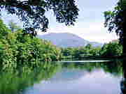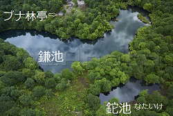| 小谷温泉山田旅館の真上方向、1,200m付近に鎌池がある。由来は鎌の形に似ていることからと言われる。鉈池(なたいけ)を隣にはべらせ、静かなたたずまいは魅力的である。80年代前半までは人に出会うことはほとんどなかったがバブルの頃、ここにゴムボートを持ち込む人や、釣り糸が散乱し、1m以上もある鉈池の鯉も姿を見せなくなった。そんな鎌池を憂いながら空き缶やゴミ拾いをしたのが今では懐かしい。写真家の林氏が写真集で紹介したこともあって、最近はアマチュア写真家と出会うことが多いが、鎌池は静かなたたずまいを取り戻し、魚たちも戻ってきた。冬には10m近い積雪という話だが、誰も立ち入れない世界になる。5月の連休でもまだ除雪が間に合わず、車で入れるのは5月下旬〜6月初旬。雪に覆われた鎌池は別世界だ。秋の紅葉もまた絶景!その年の気温変化にも左右されるが、ナナカマド、ハウチワカエデの深紅にブナの黄色がすばらしい。ブナ林亭のYさんとは20年来の顔なじみだが「夏の緑が一番だ」と、半年雪に覆われる地元の人の思いが伝わる。 |