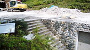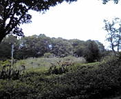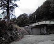 露天風呂跡 宿泊棟跡 公園から雨飾荘跡地を見上げる