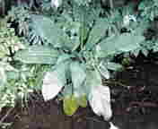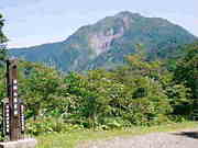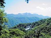 堂津岳の尾根伝い低い山並 7月サンショウウオの子ども達 7月巨大な水芭蕉の葉